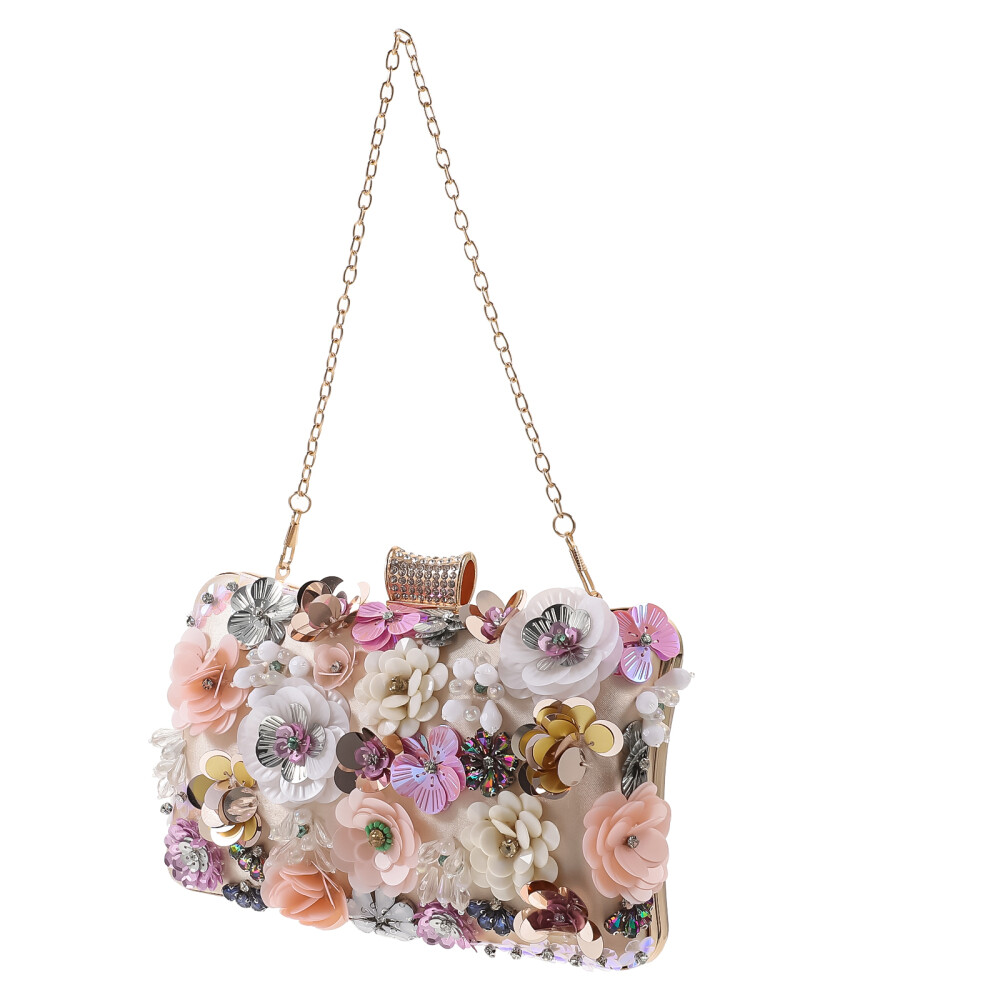 Women Clutch Bag Beaded Flower Sequins Purse Handbag Evening Bag